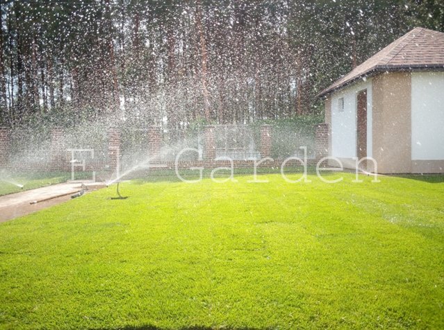 Для того, чтобы этого не произошло, необходимо регулярно (а это значит не раз в день, а 3 раза в день приподымать дерн и смотреть за влажностью прикорневого пространства). Именно прикорневого, так как на поверхности газон может быть и влажный, а вода до корней при этом, может не доходить. Тут у Вас возникнет вопрос: «Сколько по времени поливать газон?» На этот вопрос нельзя однозначно ответить, так как бывают разные по степени дренажа почвы, разные погодные условия в этот период, разная степень освещенности участка. Самым главным критерием правильности полива – легкая влажность земли под дерном, именно легкая, так как избыточное переувлажнение (постоянная грязь) может стать причиной выпривания газона и поражением газона грибковым заболеванием. (Невольно опять вспоминается о гарантии). Явным признаком переувлажнения является появление грибов на газоне и мха. Первые 2-3 недели газон нужно поливать меньше, но чаще (3 раза в сутки: утром, в обед и вечером). Многие скажут, ведь нельзя поливать газон под палящим солнцем, там на листиках собираются капельки, которые выступают в виде линзы и таким образом обжигается листовая поверхность!!! Скажем Вам так – это все слова теоретиков, а не практиков. Мы теорию, конечно же уважаем, но практике доверяем больше,но последнее слово конечно же за Вами. Для примерного ориентира о степени полива можно дать лишь такую цифру – это 12 литров в сутки на 1 м2 газона + (-) 5л - в зависимости от условий, которые были озвучены выше.